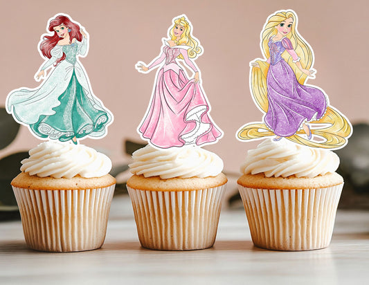 All Watercolour Birthday Princess Cupcake Toppers, Girls Toppers, Princesses Party Toppers