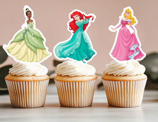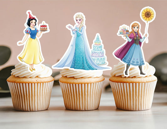 All Watercolour Birthday Princess Cupcake Toppers, Girls Toppers, Princesses Party Toppers