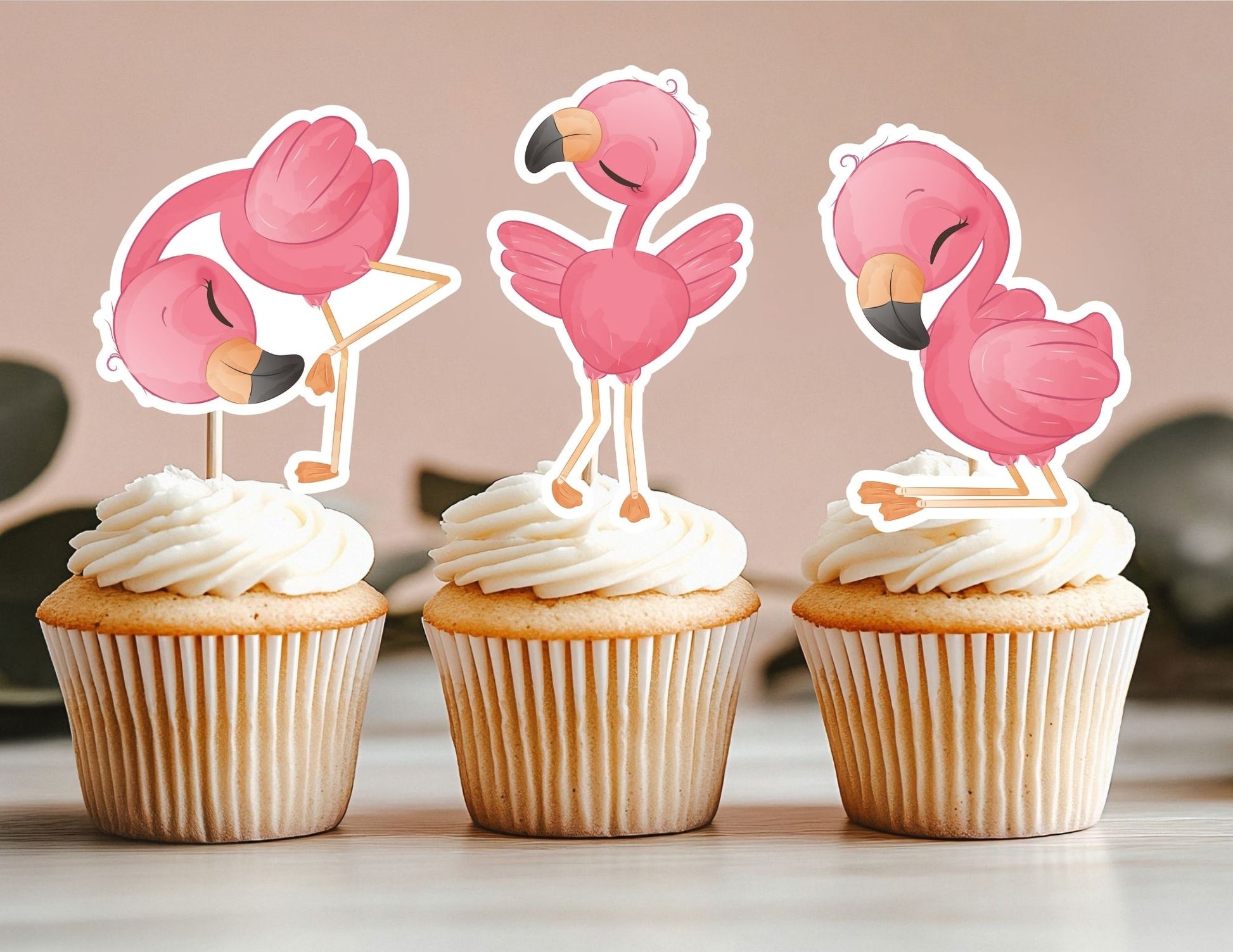 Flamingo Cupcake Toppers, Pink Flamingo Party Decoration, Bird Toppers