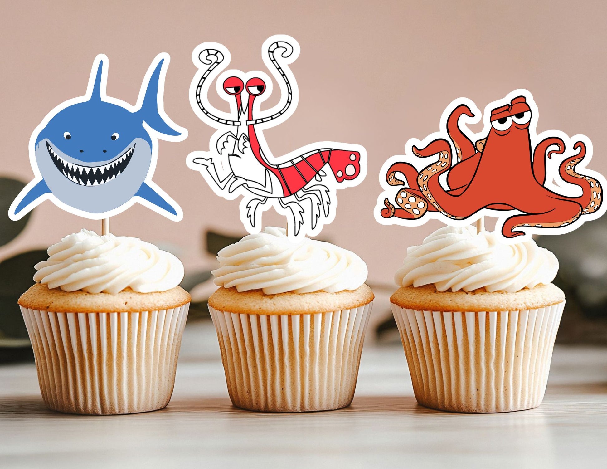Under the Sea Creature Cupcake Toppers, Fish, Shark Turtles Cupcake Toppers