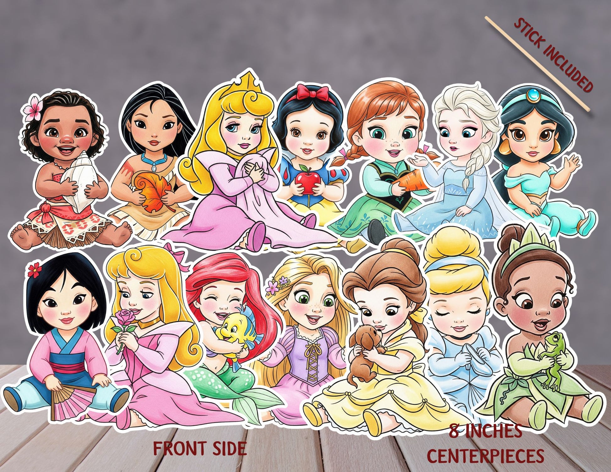 Watercolour Baby Princesses Centerpieces, Princesses Party Decoration